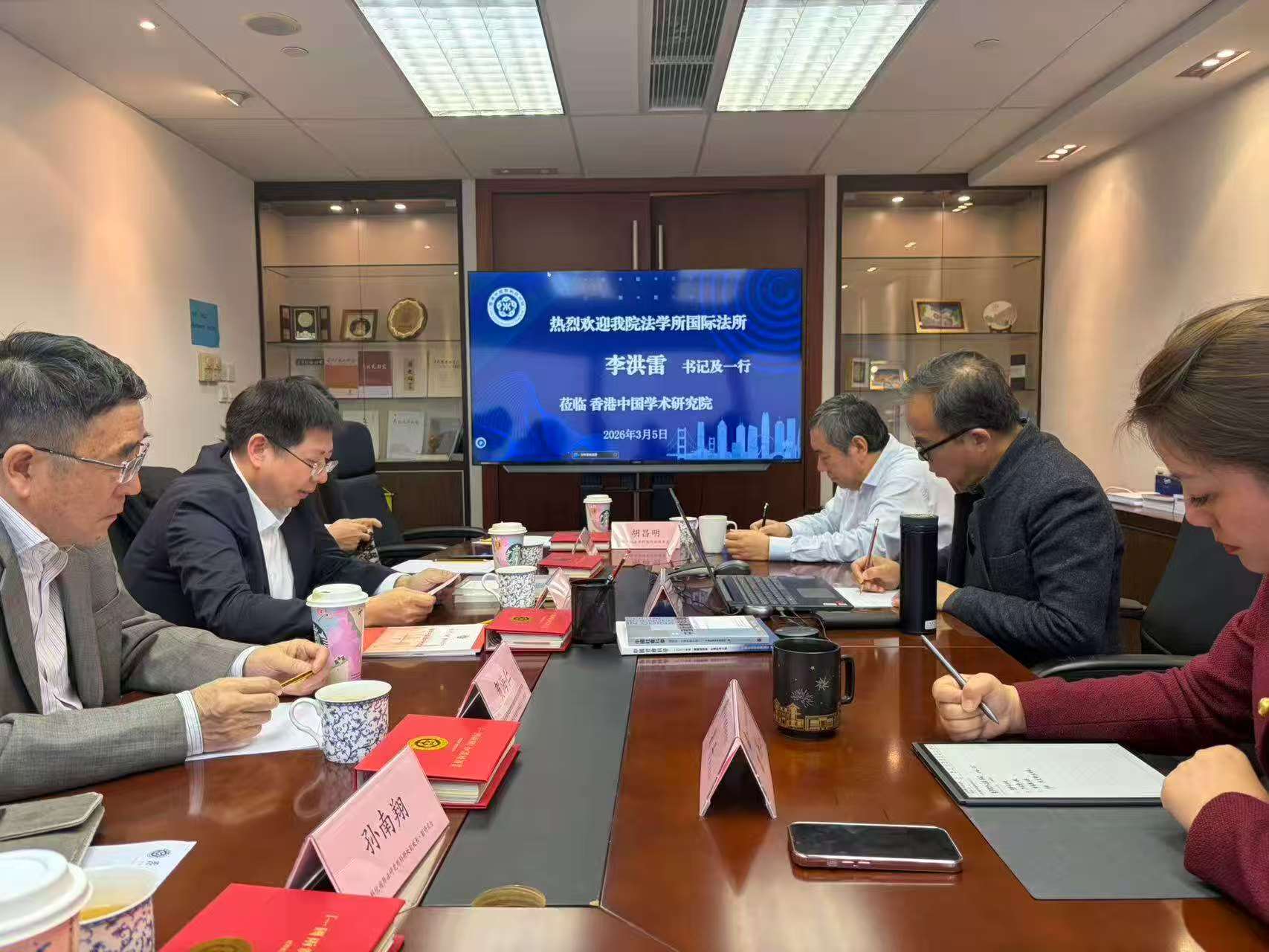 2026年3月4日至6日,中国社科院法学所国际法所联合党委书记、中国法学会港澳基本法研究会副会长李洪雷研究员率团赴香港特别行政区开展学术交流。代表团成员包括法理研究室负责人贺海仁研究员、《国际法研究》编辑部主任曲相霏研究员、国际经济法研究室副主任孙南翔副研究员、何晶晶副研究员、胡昌明副研究员、徐斌助理研究员。代表团赴香港中联办、香港特区政府财政司司长办公室、香港特区特首政策组、香港金融管理局、香港特区政府引进重点企业办公室、国际调解院、香港国际仲裁中心以及香港大学法学院、香港中国学术研究院等机构,开展多场座谈会,与在港的政府官员、实务专家、高校学者和校友代表等进行了深入的交流。