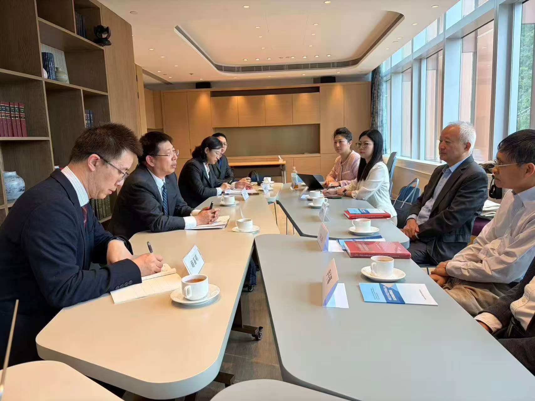 代表团随后前往香港中国学术研究院开展座谈交流。香港中国学术研究院院长黄平、研究员陈新欣、办公室主任刘丹参加座谈。黄平院长围绕香港特区的独特优势、大湾区规则衔接与机制对接、涉外法治建设等进行了充分的介绍。双方表示要进一步推动香港特区法治建设研究,加强法学所、国际法所和香港中国学术研究院的交流与合作。