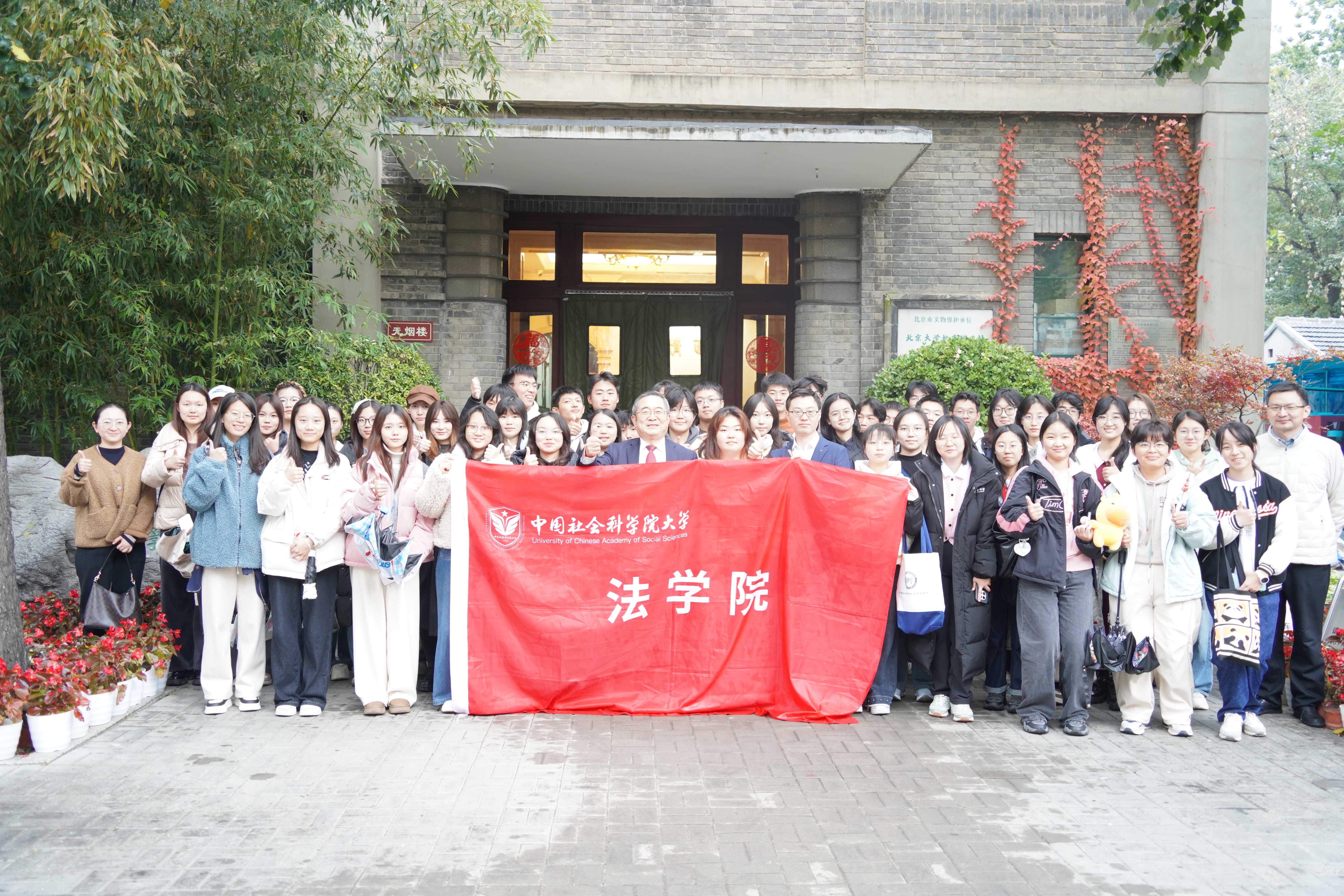 正直精邃,闻道黉学。满怀对中国社会科学院法学研究所学术传统的景仰与期盼,2025年11月7日,在中国社会科学大学法学院党委副书记、本科生辅导员申洁老师的带领下,中国社会科学院大学法学院47名2025级本科新生风雨无阻来到北京市东城区沙滩北街15号,共赴师生访所之约。