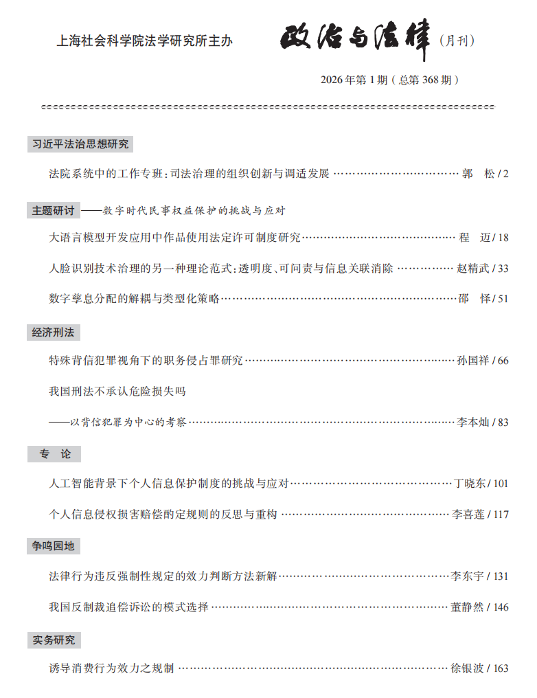 摘要:人工智能对个人信息保护制度提出了一系列挑战。究其根源,个人信息保护制度起源于档案化个人信息时代,其针对的典型场景是行政机构低频处理少量档案类个人信息。在以互联网与信息技术为代表的前人工智能时代,个人信息处理的典型场景就已经转换为企业高频处理大规模行为类个人信息。在人工智能背景下,个人信息处理的典型场景进一步演化为海量个人信息的融合汇聚型处理,其对数据的处理类似水库对海量水滴的汇聚与融合利用。人工智能背景下的个人信息保护原理与制度应当与人工智能处理的典型场景对齐,其原则应从静态预防迈向动态发展思维,从激化对抗迈向信任互惠,从个体主义迈向群体主义。在此基础上,其具体制度模块也应进行相应调整与重构。人工智能处理个人信息应成为个人信息保护制度改革的试验田,个人信息保护的一般原理与制度也应借机进行改革与完善。