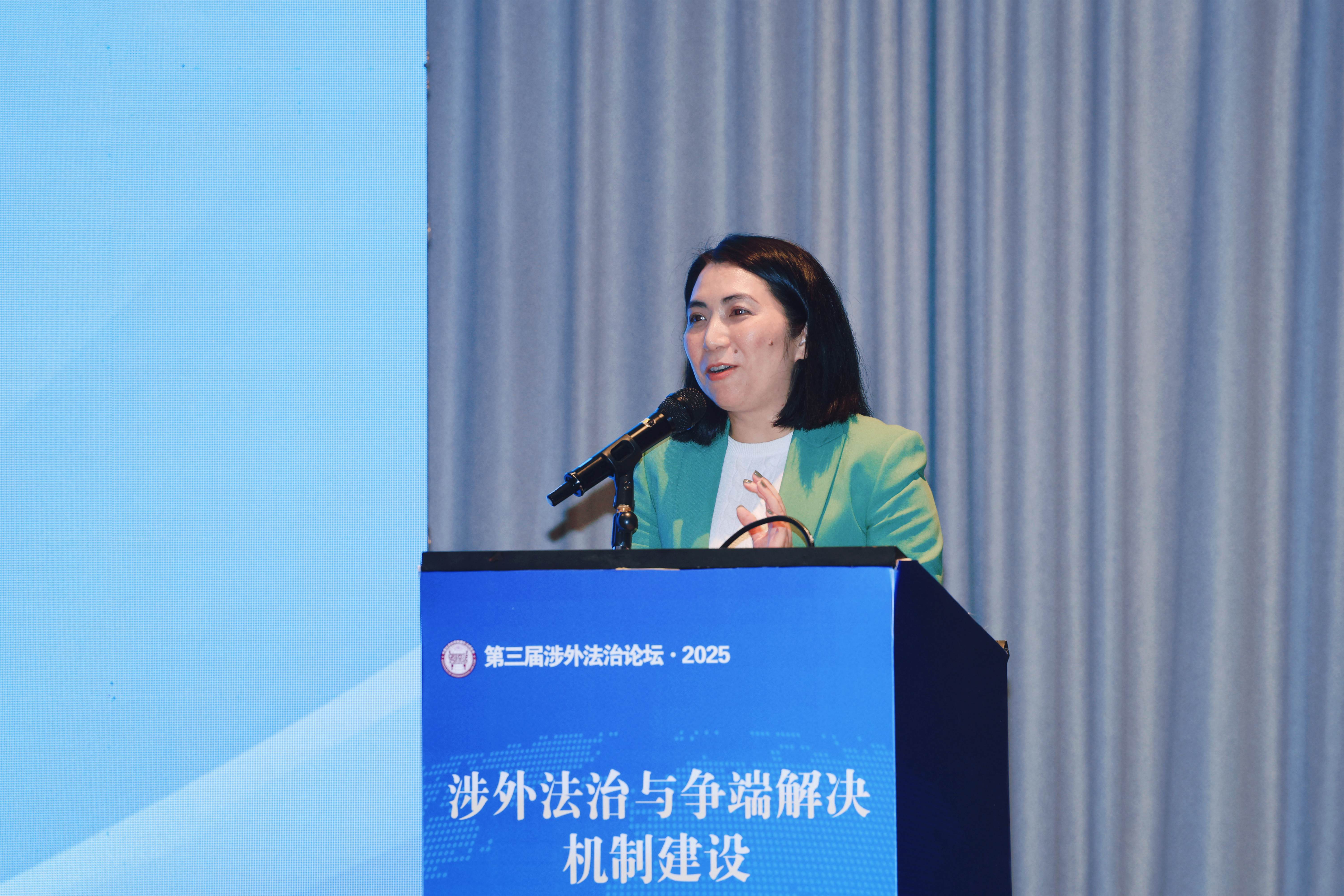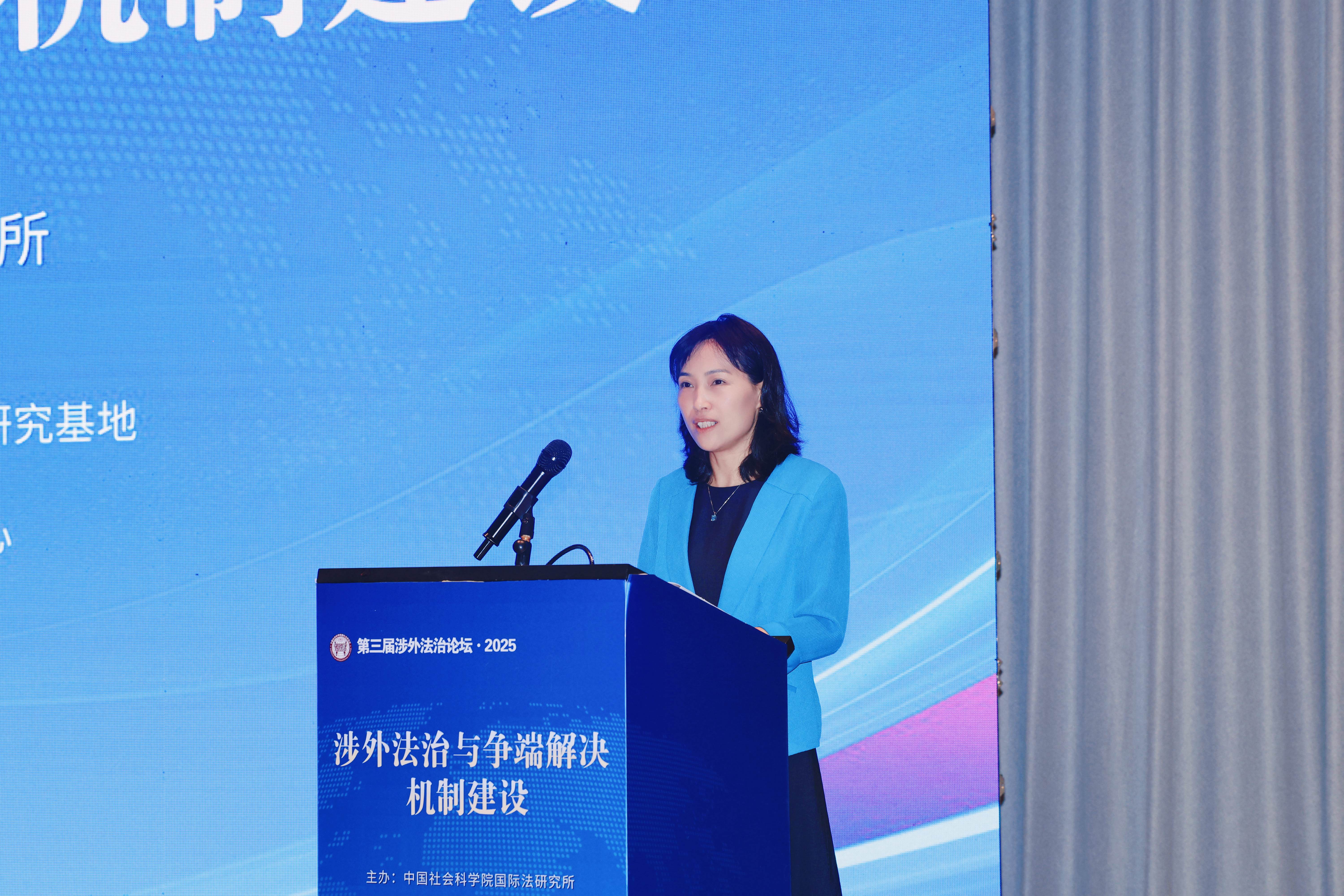 中国社会科学院国际法研究所助理研究员王惠茹以《论公法域外管辖的原则与限度——以美国出口管制法为切入》为题发言,以美国出口管制法为样本,提出公法域外管辖需遵循主权平等原则和比例原则,为应对单边制裁提供理论支撑。