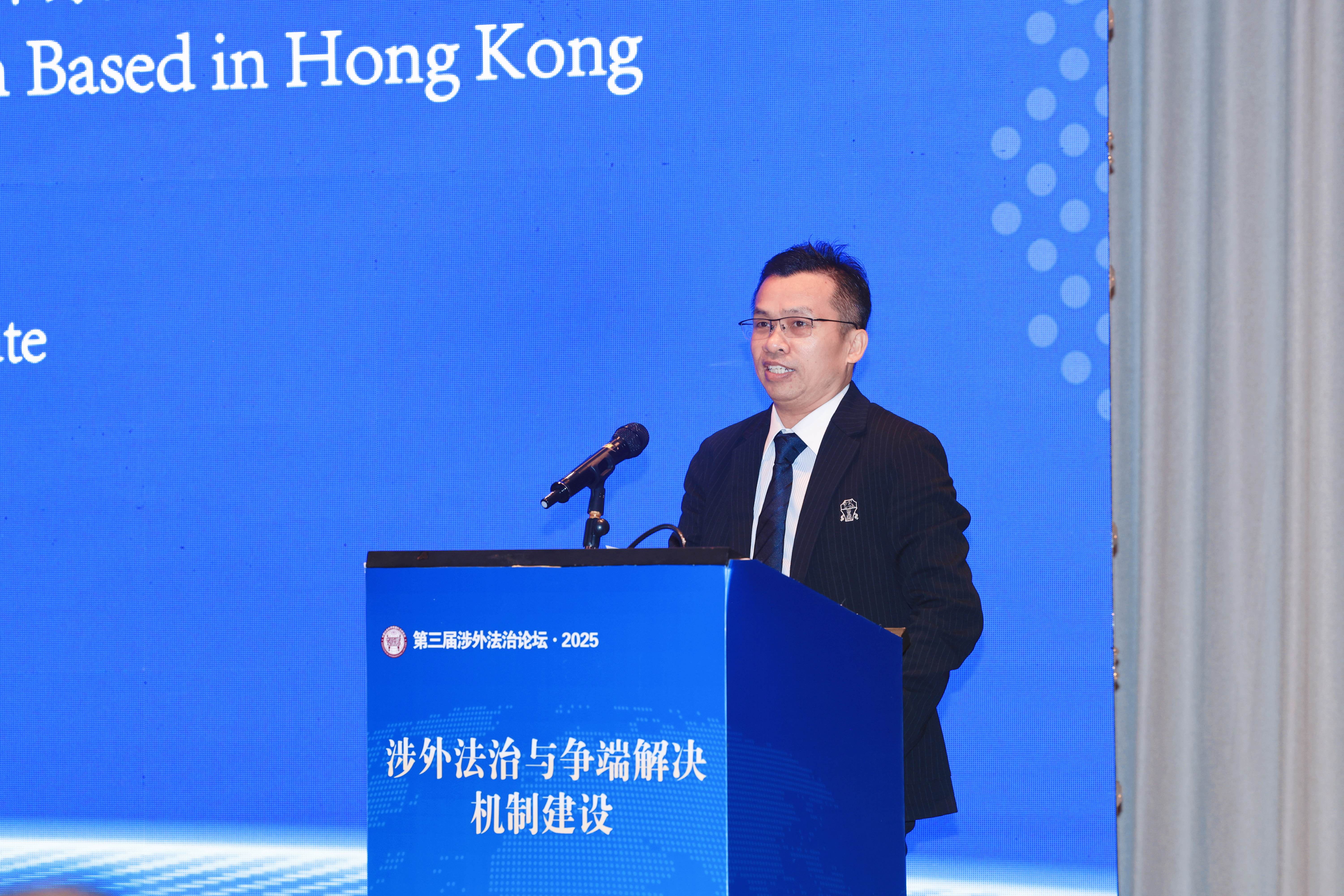 中山大学法学院院长张亮教授以《“一带一路”投资争端解决机制构建》为题发言,建议依托在香港的国际调解院细化规则,联合亚投行构建面向“一带一路”国家的投资仲裁制度,吸纳沿线国家人才参与裁决,兼顾效率与文化适配性。