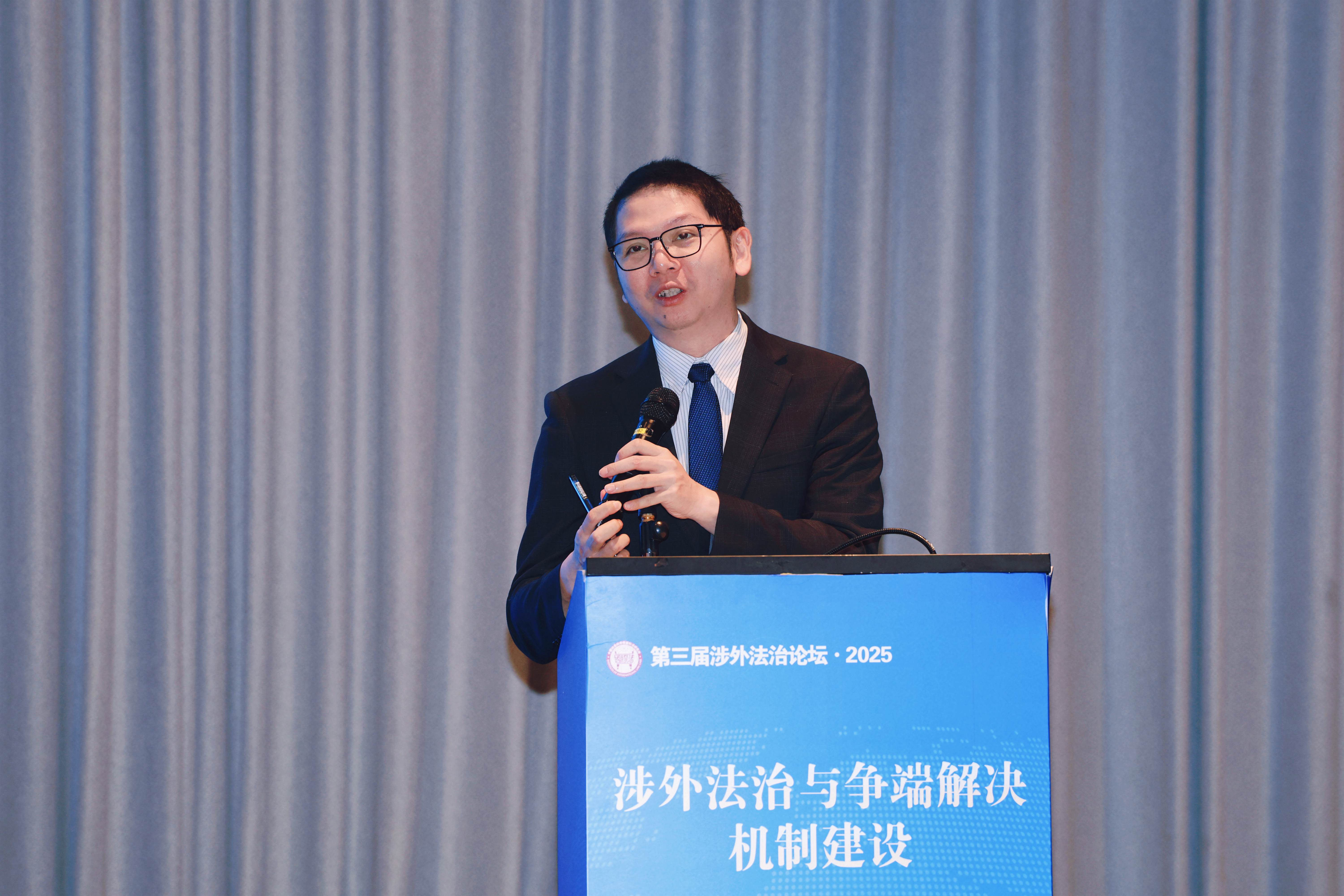《武大国际法评论》编辑部主任、武汉大学国际法研究所副教授乔雄兵以《中国反外国制裁追偿诉讼制度:挑战与回应》为题发言,分析《反外国制裁法》追偿诉讼制度的主体界定模糊、管辖权规则缺失等问题,建议参考《民法典》完善主体范围,明确管辖连接点。