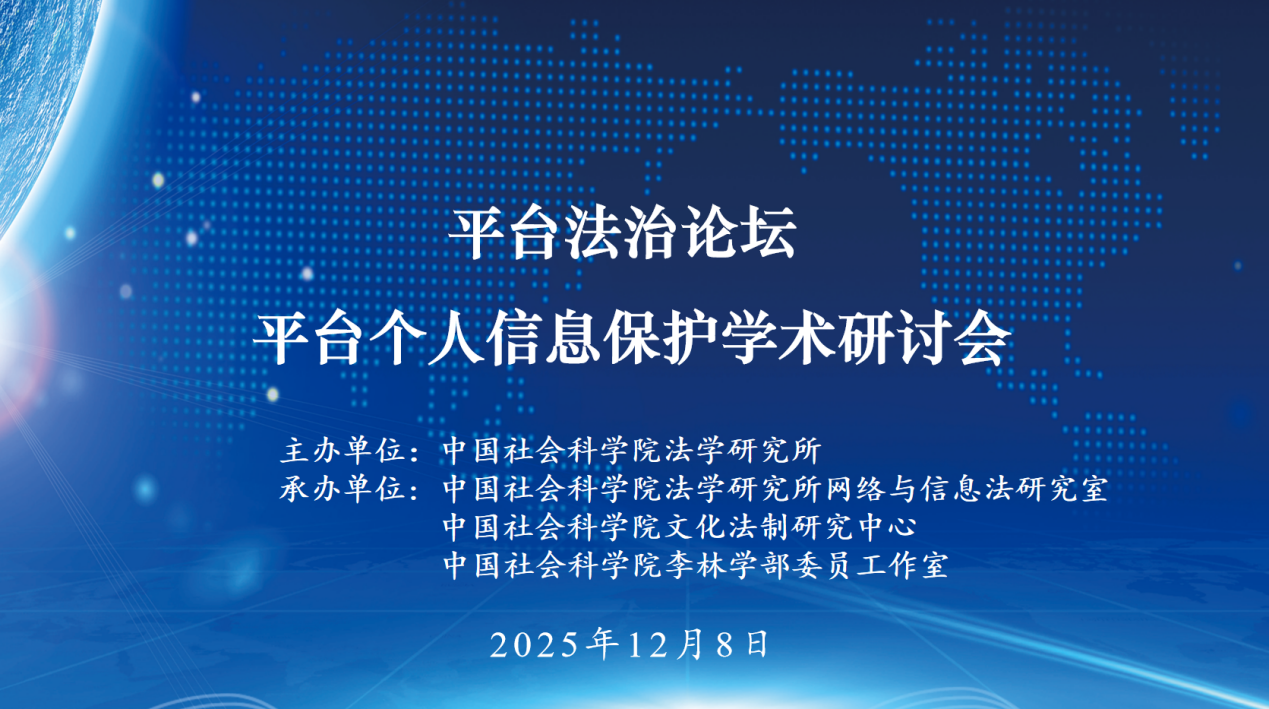 2025年12月8日,“平台法治论坛 平台个人信息保护学术研讨会”在中国社会科学院法学研究所召开。此次研讨会由中国社会科学院法学研究所主办、中国社会科学院法学研究所网络与信息法研究室、中国社会科学院文化法制研究中心、中国社会科学院李林学部委员工作室承办,来自中国社会科学院、北京大学、中国人民大学、中央财经大学和中国移动等单位的数十位专家学者参会研讨。