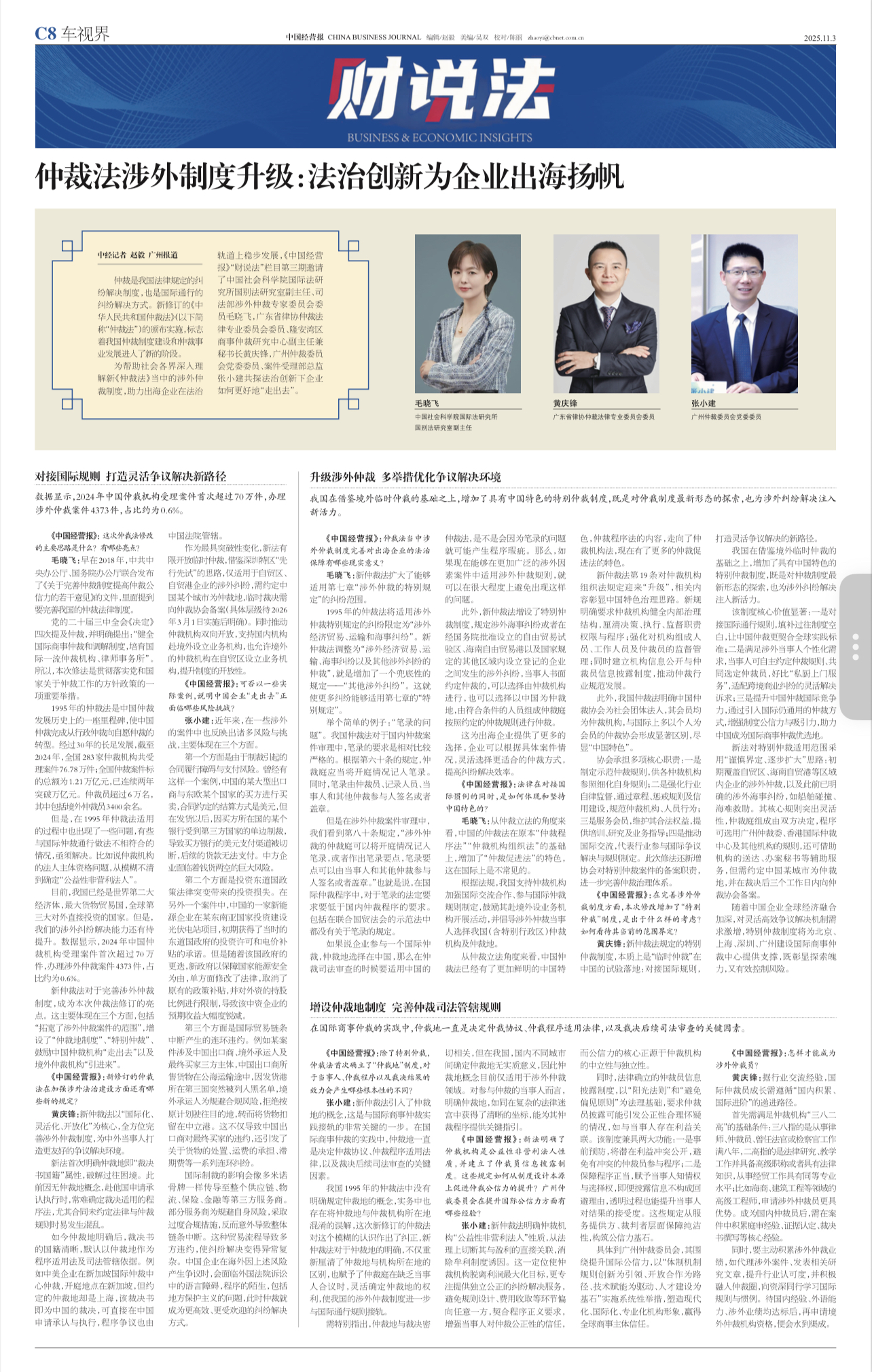 毛晓飞副研究员接受《中国经营报》专访:仲裁法涉外制度升级 法治创新为企业出海扬帆