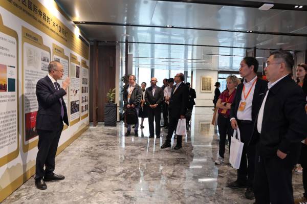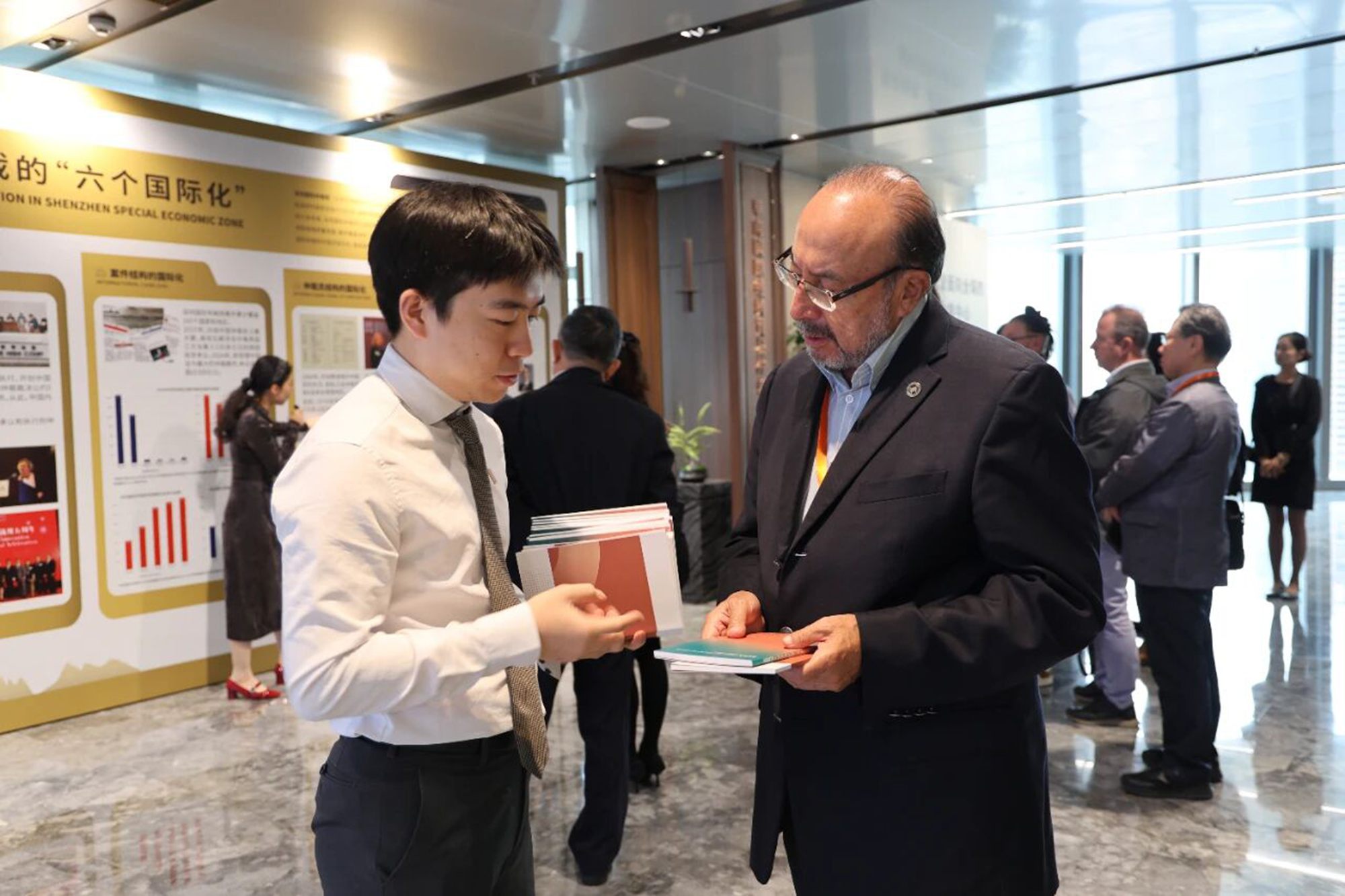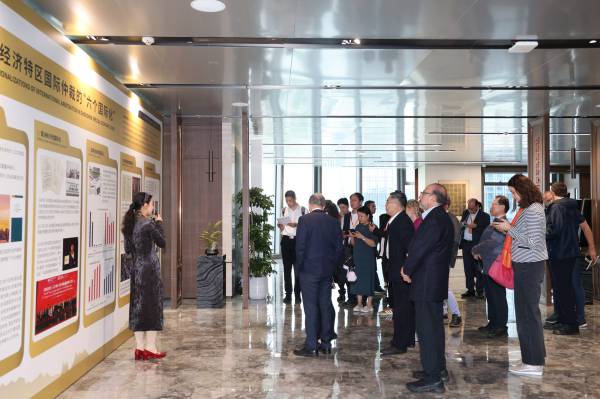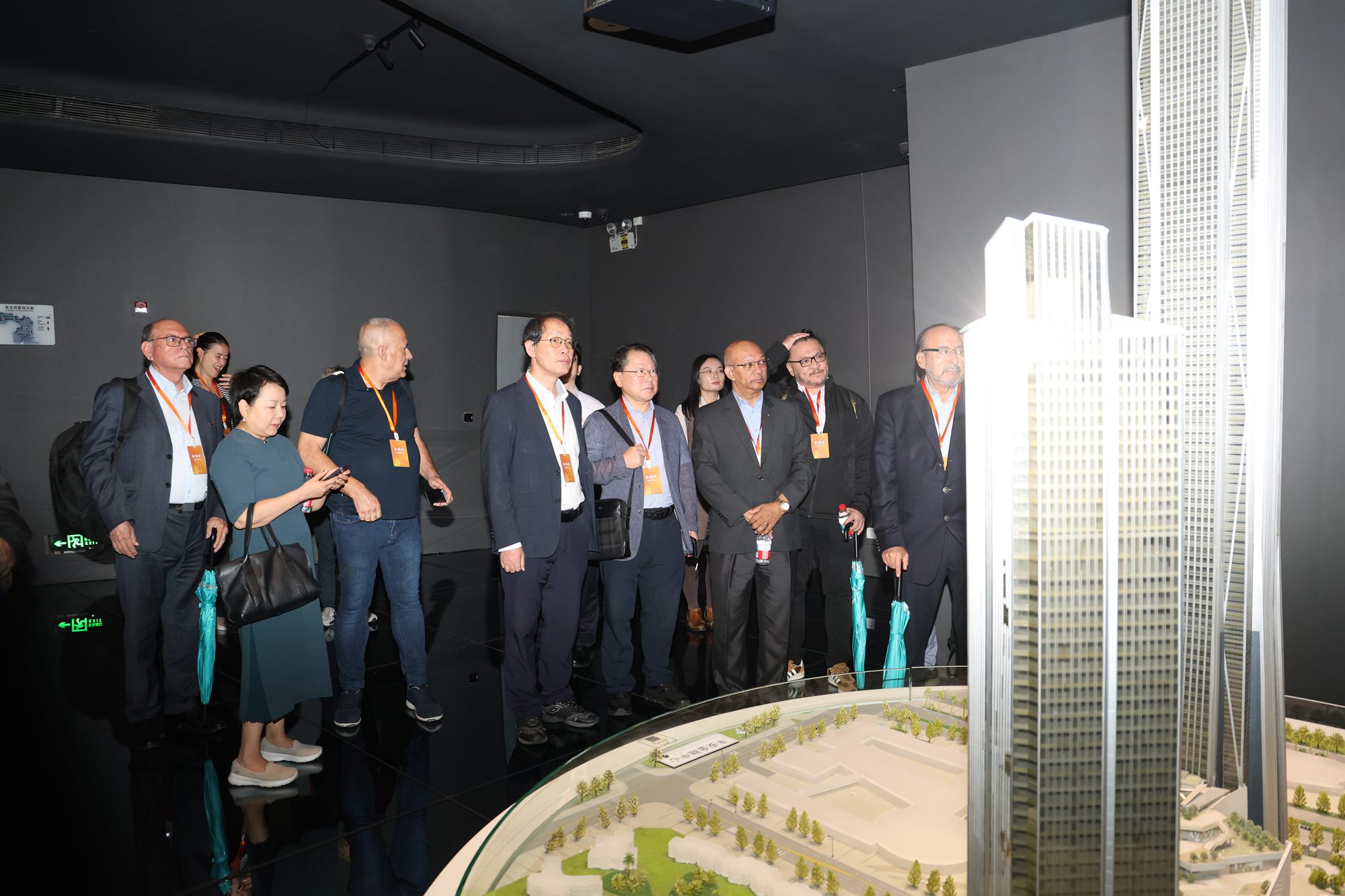 10月21日,访问团一行在深圳调研。首先参访了深圳平安国际金融中心、腾讯集团深圳总部,体验AI大数据模型,感受科技助力产业。随后,访问团前往深圳国际仲裁院,详细了解中国改革开放四十多年来国际仲裁在深圳经济特区的创新发展、深圳国际仲裁院国际化的治理机制和仲裁员结构、“双城两院”规则和机制创新等,并参观庭审设施,对中国国际仲裁在服务全球经贸往来中的重要作用进行现场调研和交流。最后,访问团来到中国社科院全面依法治国智库前海基地调研,全面了解基地成立背景、发展定位、研究成果等,并就基地服务大湾区建设、推进国际交流的情况进行考察交流。