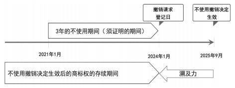 图1 日本《商标法》上不使用撤销决定生效的溯及力示例